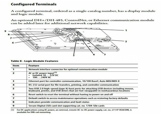 استهلاك الطاقة،DC: | 35W Max ((1.46A عند 24V DC) | الطراز: | 2711P-T7C22D8S |